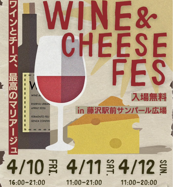 藤沢駅前サンパール広場で、「WINE&CHEESE FESTIVAL藤沢2026」が開催されます。ワインの飲み比べをはじめ、チーズ料理やワインに合うフード、当イベント限定メニューなどが楽しめる…