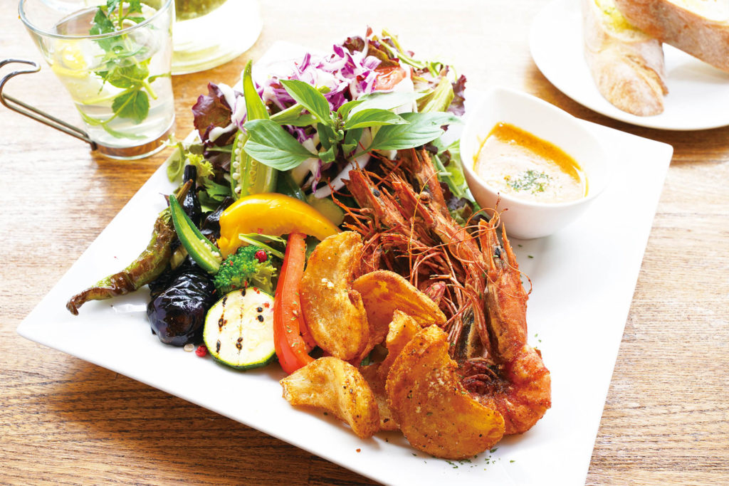 ランチの人気メニュー「ガーリックシュリンププレート(1,320円)」もそのひとつ。