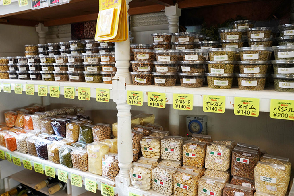 2004年のオープン以来、地元民を中心に愛されているイタリア食材店『TANTO TEMPO』。店内の棚にはパスタやオリーブオイル、調味料などがところ狭しと並んでいて、他の輸入食材店では見かけないものも多く集められている。