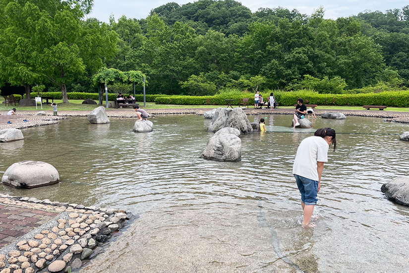 「水辺の広場」で水遊び、カフェでひんやりスイーツも
