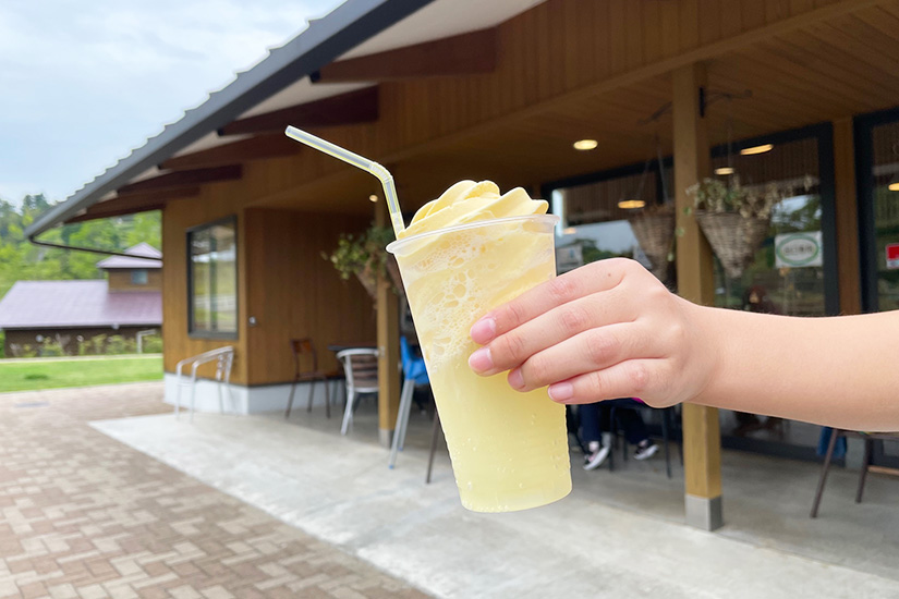 このほか公園内には、地元食材が味わえるカフェがあり、火照った体をひんやりスイーツで冷やすのもオススメ。私は、緑(あお)みかんシロップをドリンクに用いたマンゴーソフトフロートを注文してみました♪