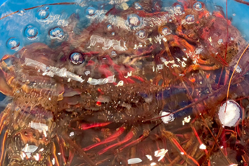 貝類も水の張ったバットの中でブクブク、大きな樽の中には生きた伊勢海老も。