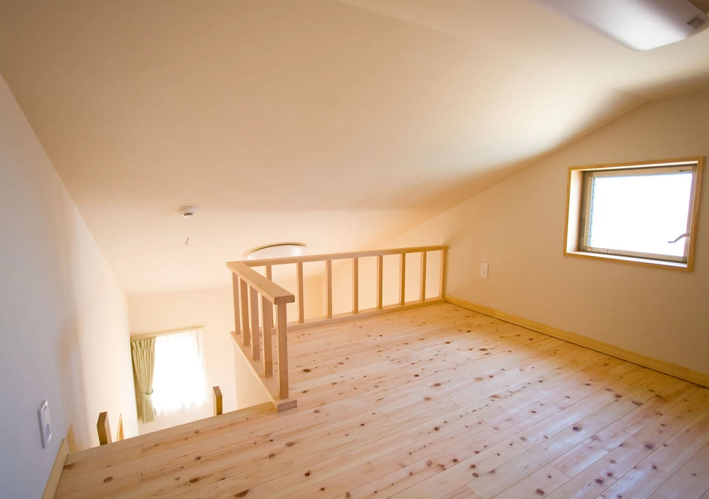 吹き抜けから朝日が入る家
