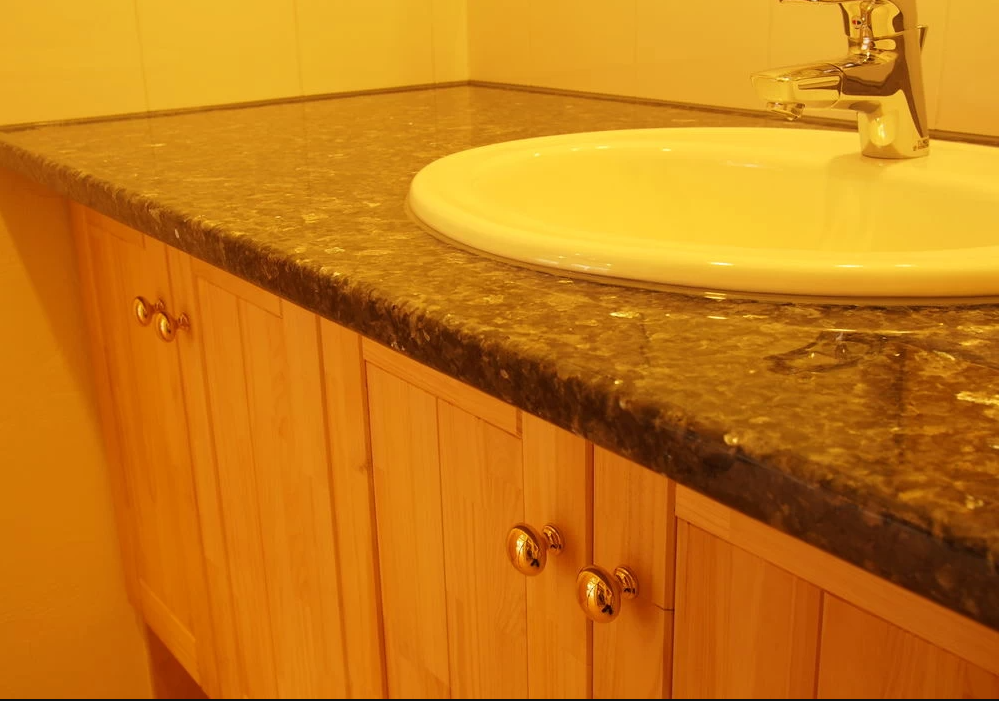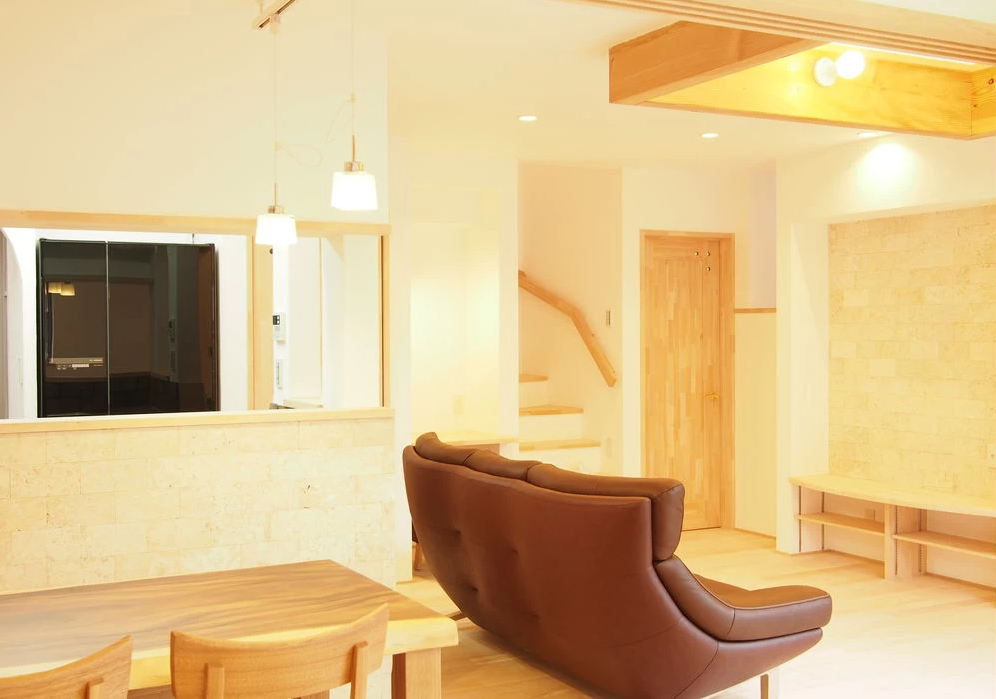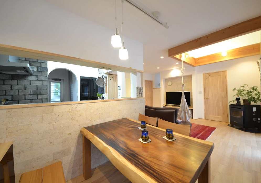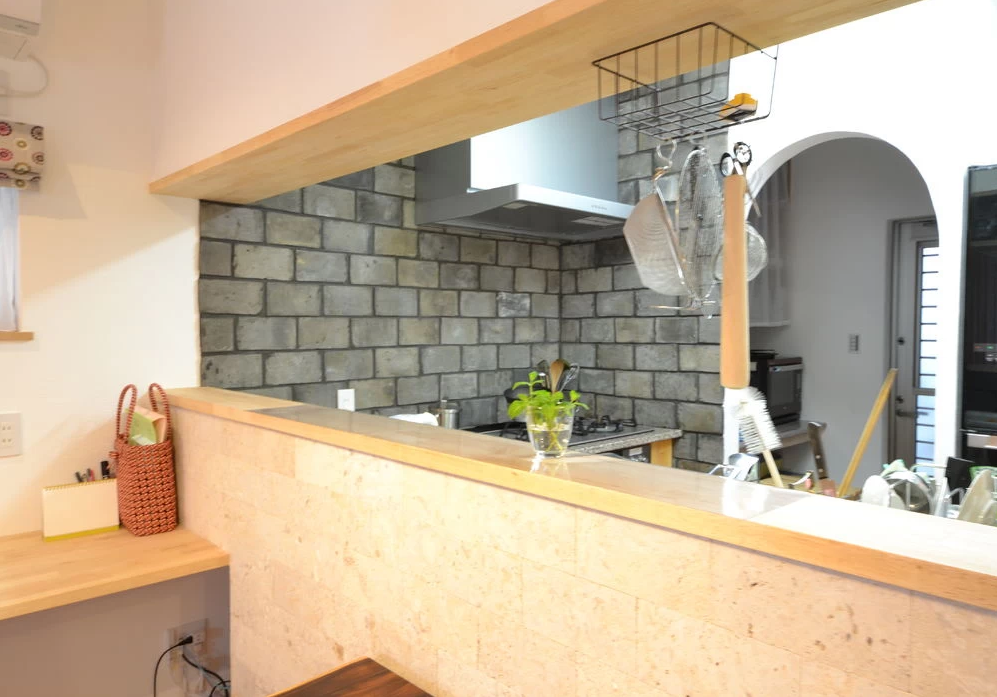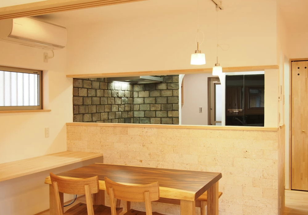 天然石張りキッチンの家