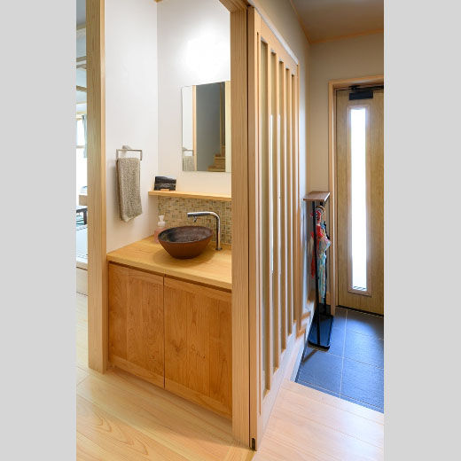 洗濯動線を集約した、床座リビングの家
