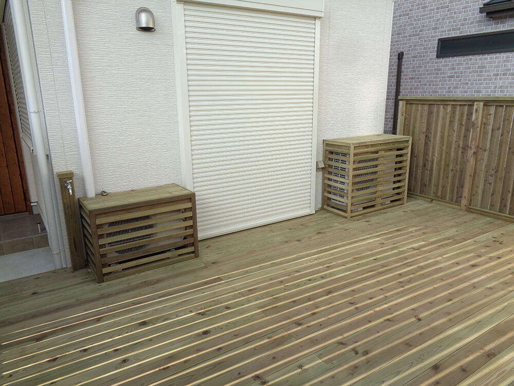 せっかくウッドデッキを作っても、無機質なエアコンの室外機が雰囲気を壊しかねません。