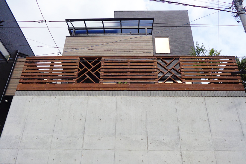 横張りデザインとオリジナルデザインフェンスを2か所はめ込みました。