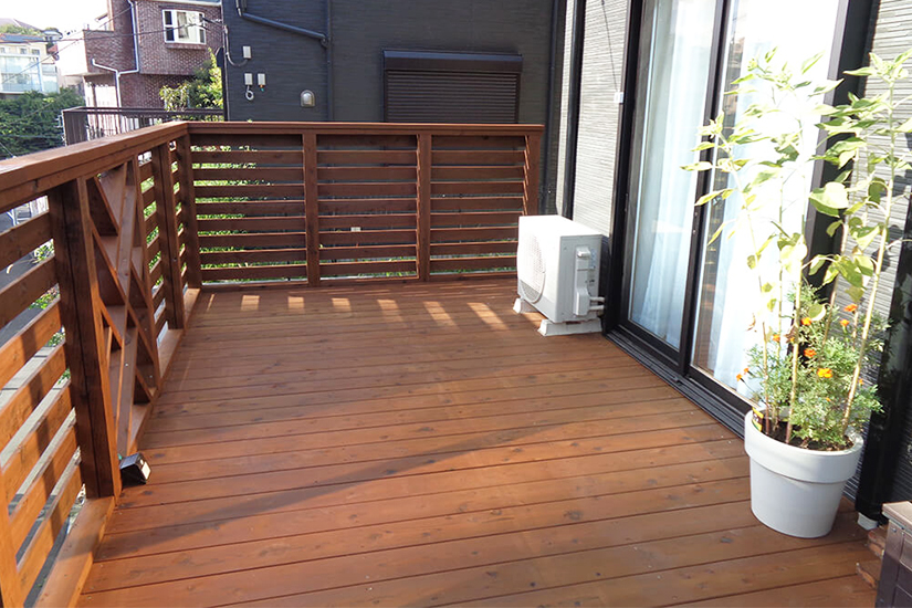 デッキ・フェンス全てカスタニ色キシラデコール塗装仕上げです。
