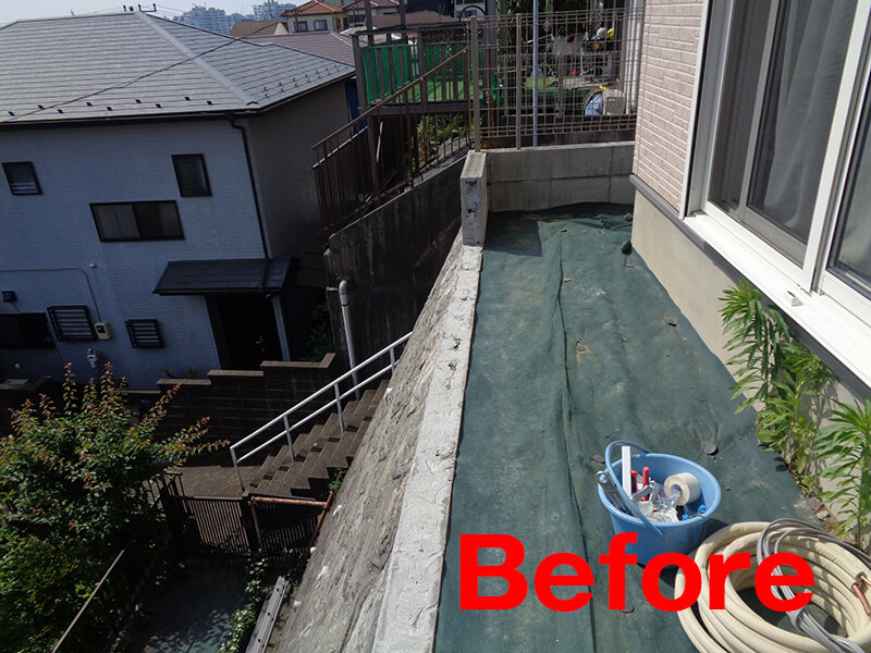 掃き出し窓からフラットで出入りするため、既設のブロック2段とメッシュフェンスを解体撤去しています。