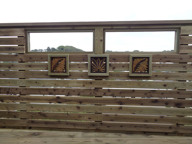 我が家だけのオリジナル!中央に3か所リーフオブジェフレーム(お客様支給)を取り付けました。