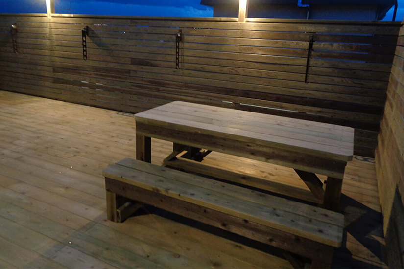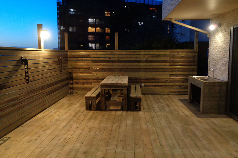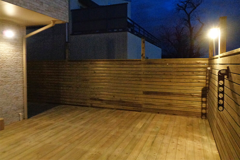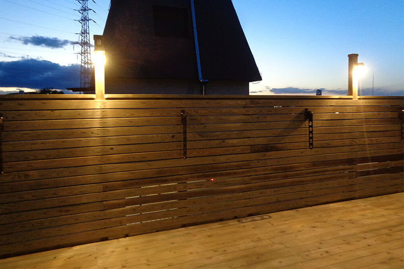 昼間とは違った雰囲気で、夜にはウッドデッキを優しく照らします。