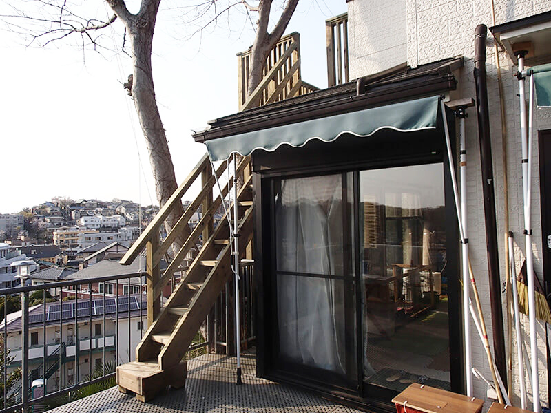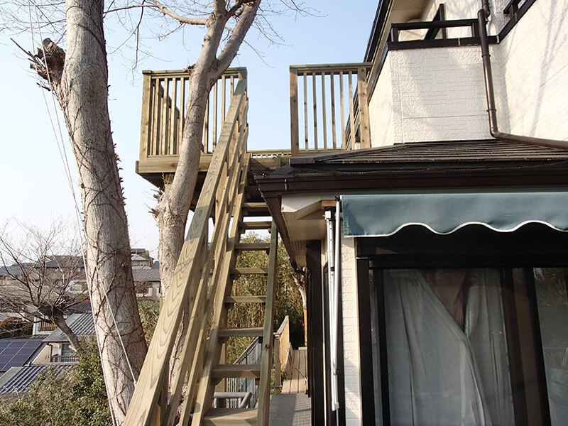 車は150mほど離れた場所で材料運び等できるか、また高さも6mあり工事できるか心配でしたが、念願の展望デッキが完成し満足しています。