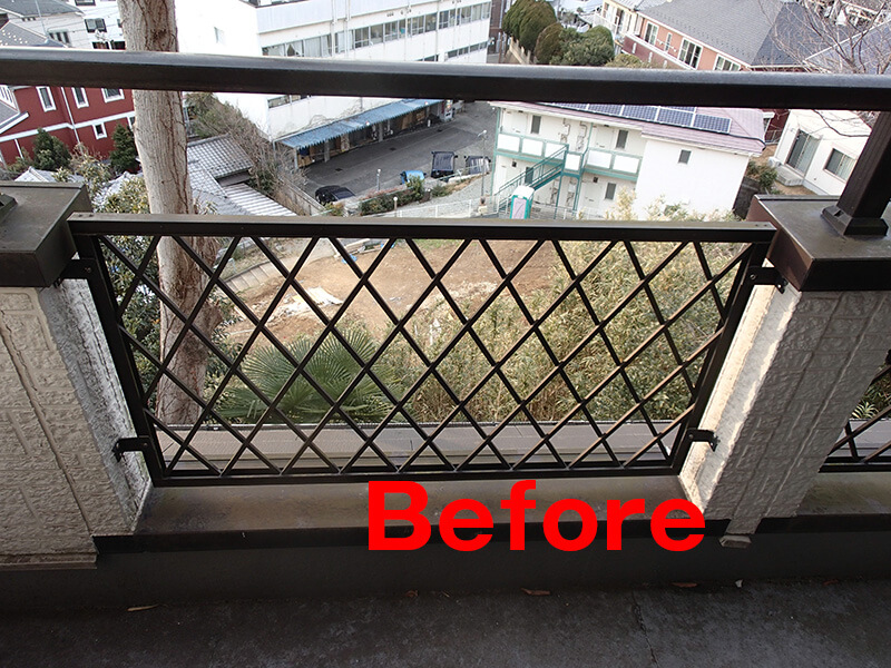 既存バルコニーのアルミ柵を撤去し出入口とし、ウッドバルコニーとつなげました。