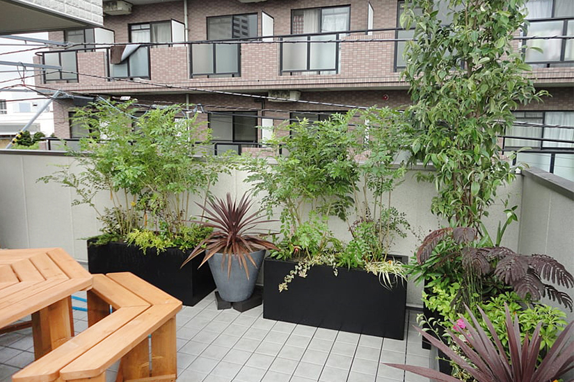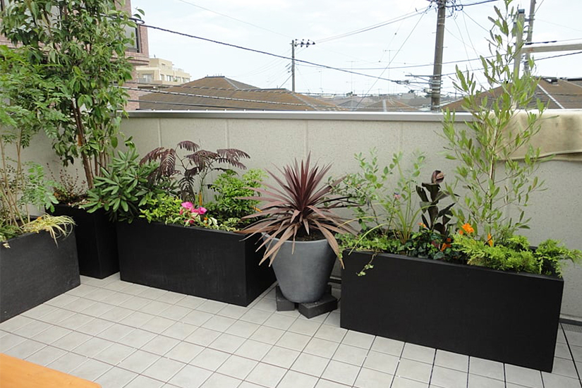 とても軽いFRPのプランターを配置し土も軽量土壌を使用しました。