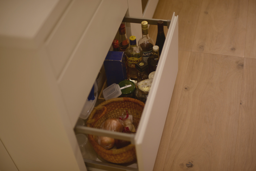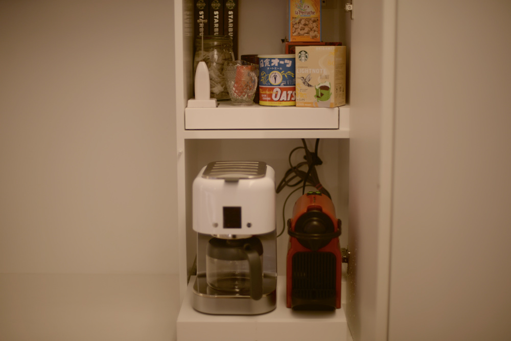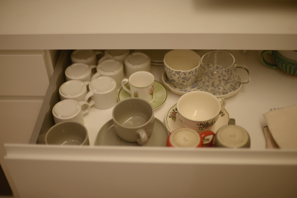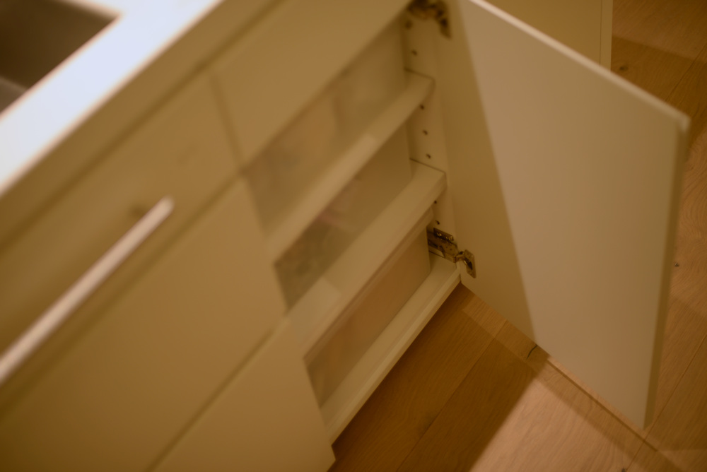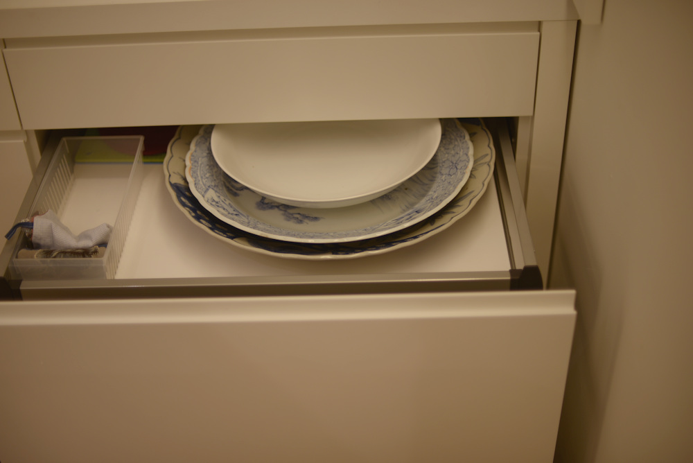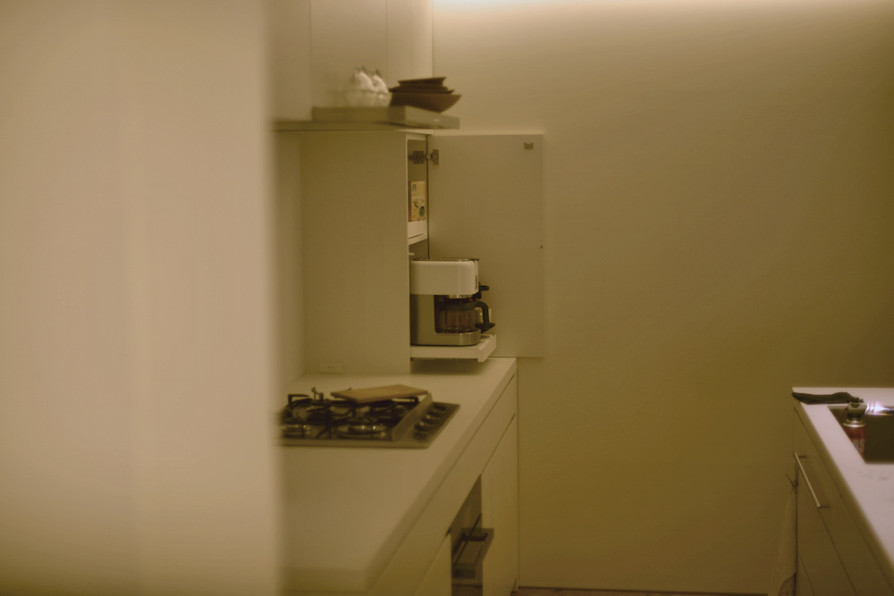 アイランドキッチンの天板には、クォーツのビコストーンを採用し、このカラーもキャビネットの仕上げと同じく少しくすんだホワイトを選び、また壁全体も同色で仕上げることで、キッチンそのものを空間に表現するのではなく、あくまでここはキャンバスであって暮らす日々の移ろいがこの場所に美しく表現されるキッチンに仕上がったのでした。