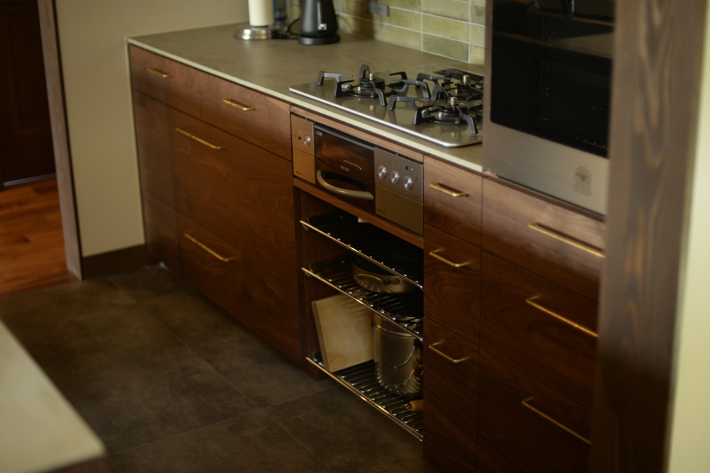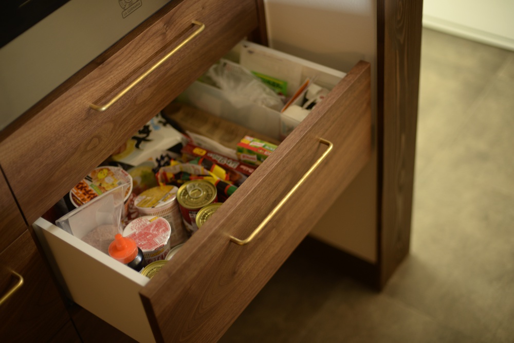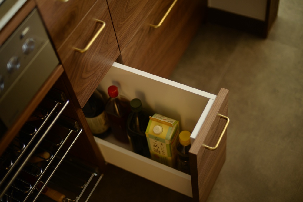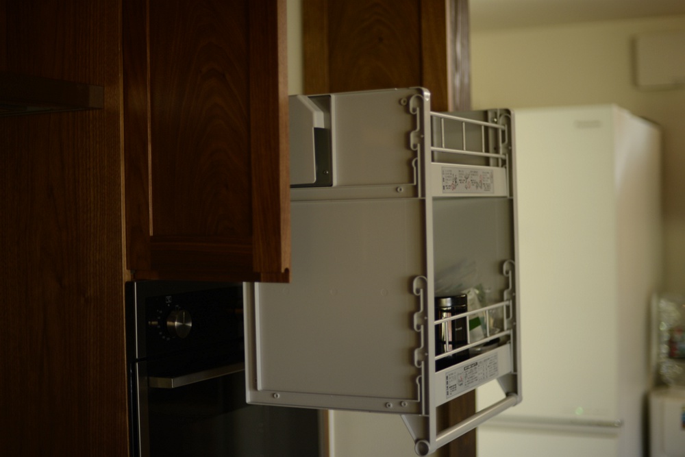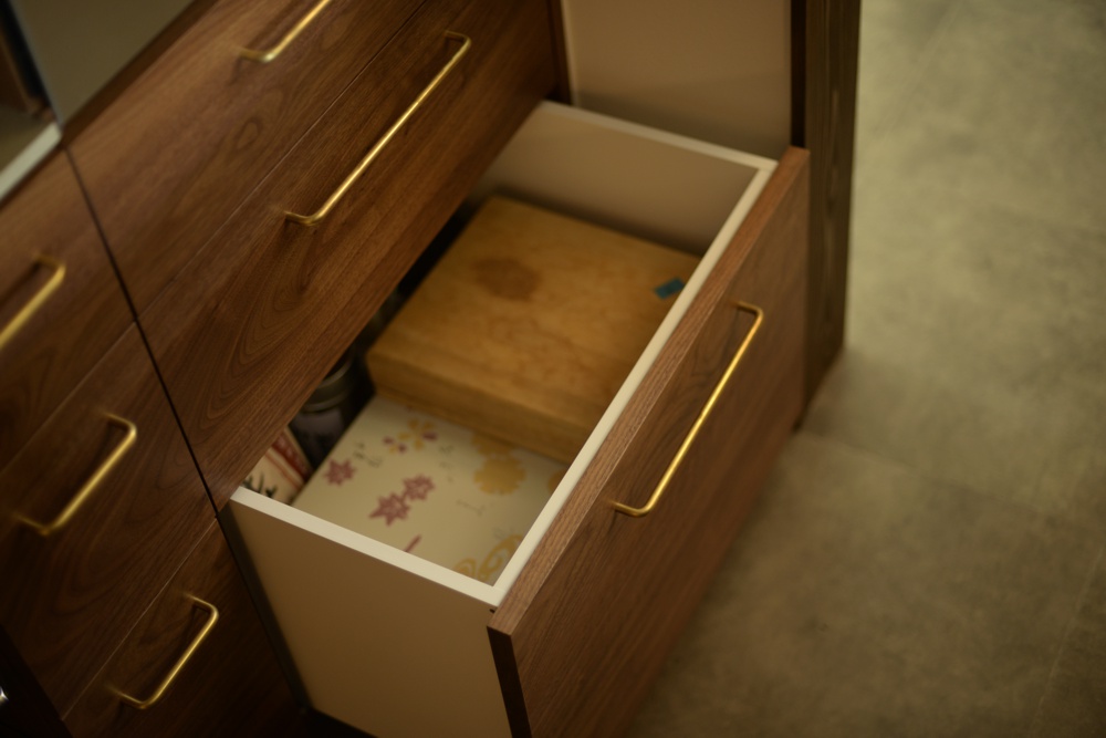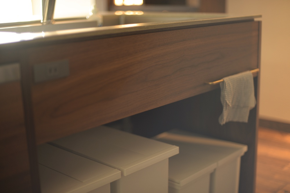 キッチン側扉・前板:ブラックウォールナット板目無垢材