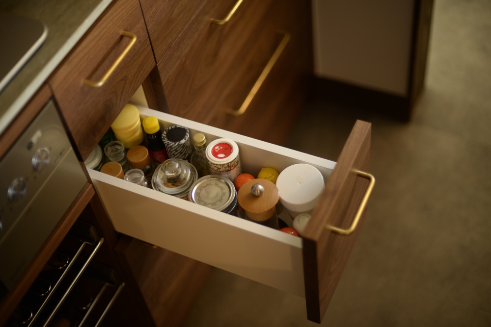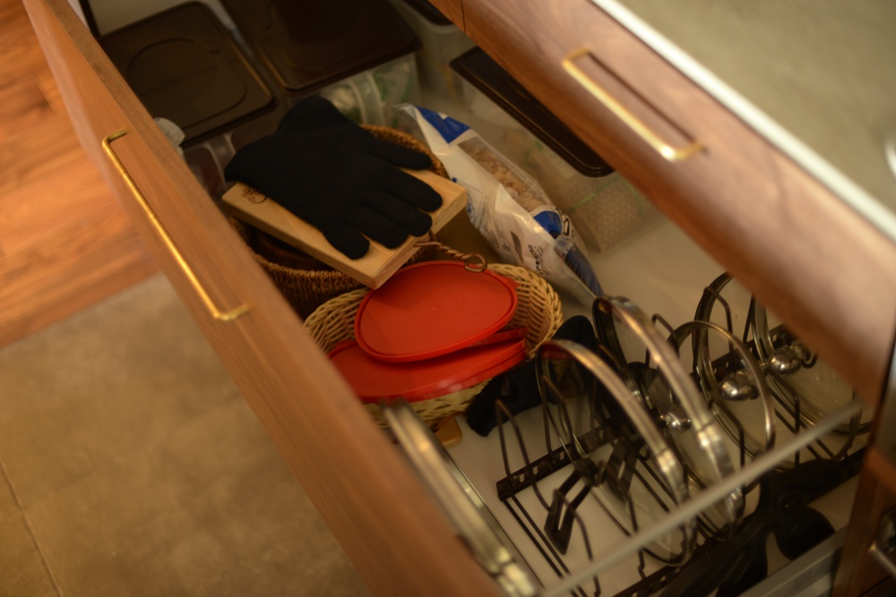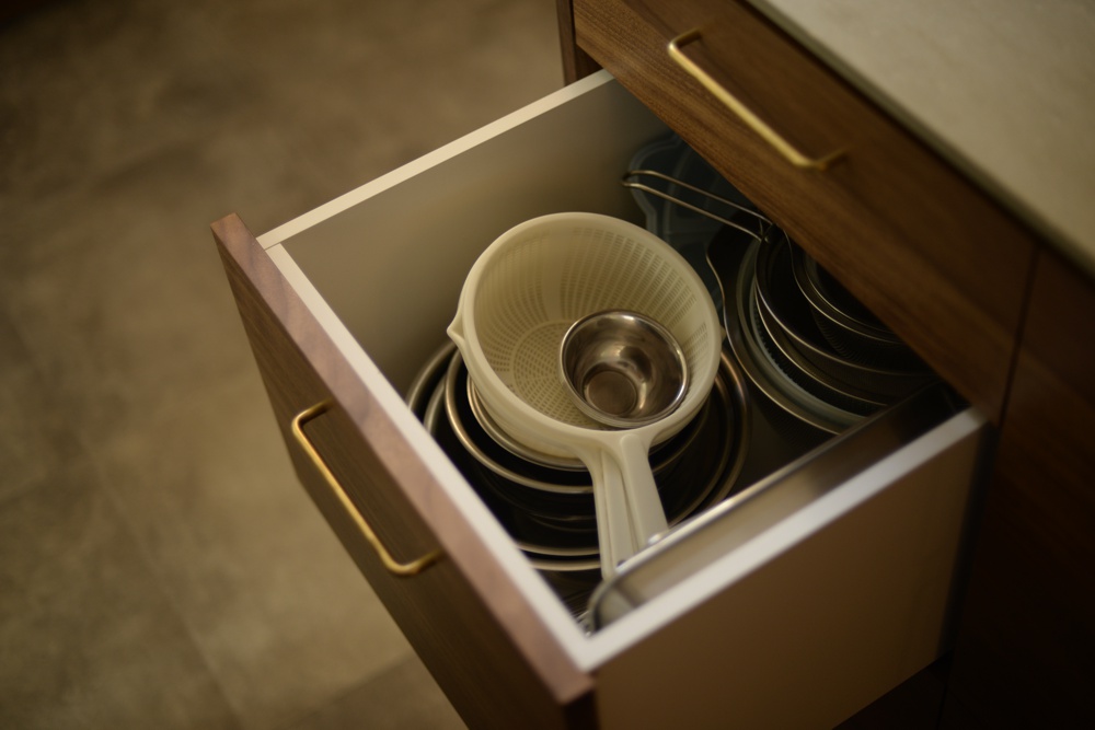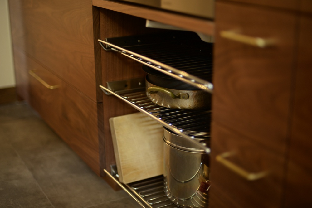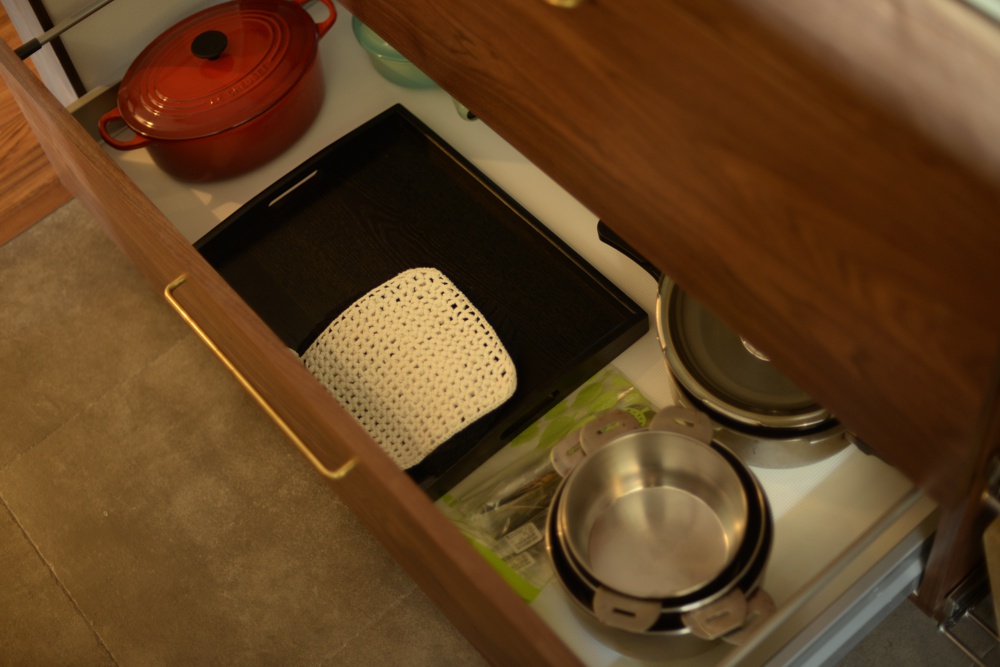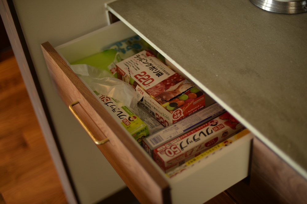 キッチン側扉・前板:ブラックウォールナット板目無垢材