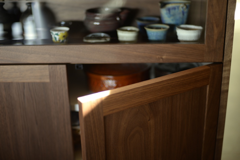 側面・リビング側扉:ブラックウォールナット板目無垢材