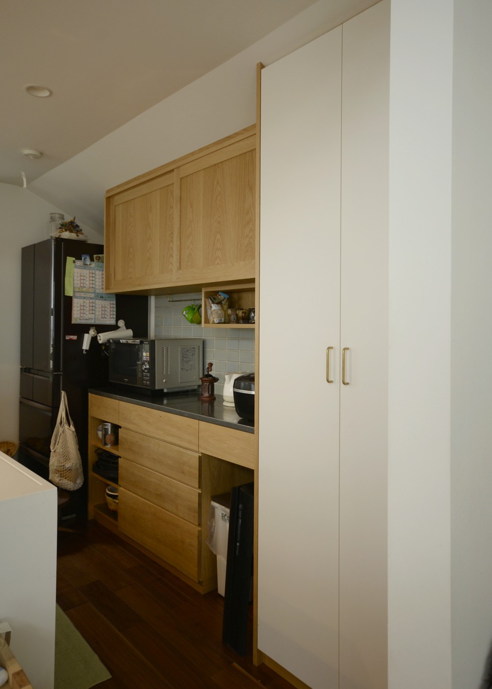 ナラ板目のセパレートの食器棚とパントリー