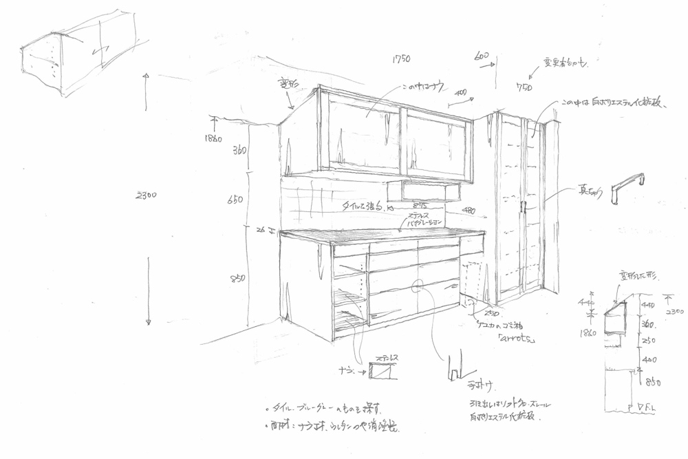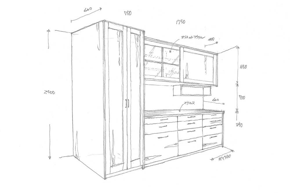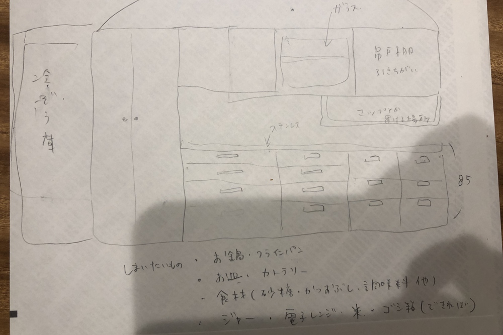 私、今井大輔の自宅のキッチンの様子を見て同じような食器棚を作りたいという相談を頂きました。