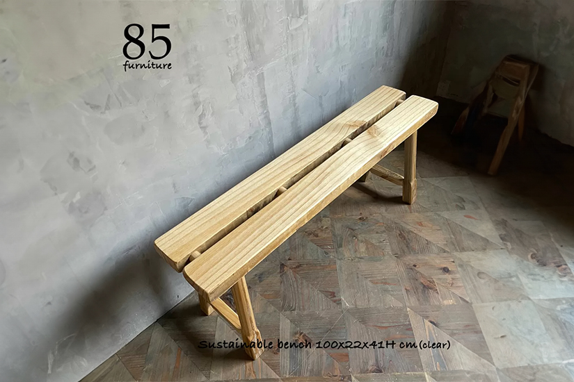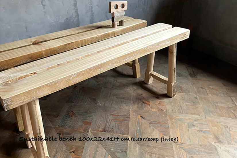 ※古い家屋の柱、9〜10 cm角のモノを1.7mほど送っていただければ、こちらのベンチを製作可能です。(幅100cmの場合)