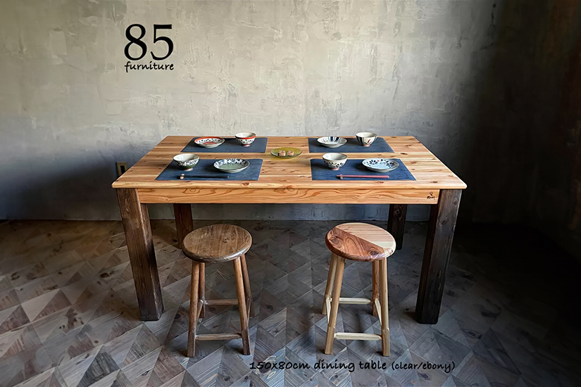 杉はとても柔らかい木材で、キズが付き易く、短期間でまるで長年使用していたようなアンティーク感を出すことができ、色味も年月と共に多少変化します。