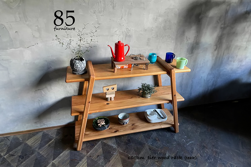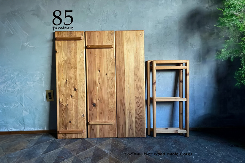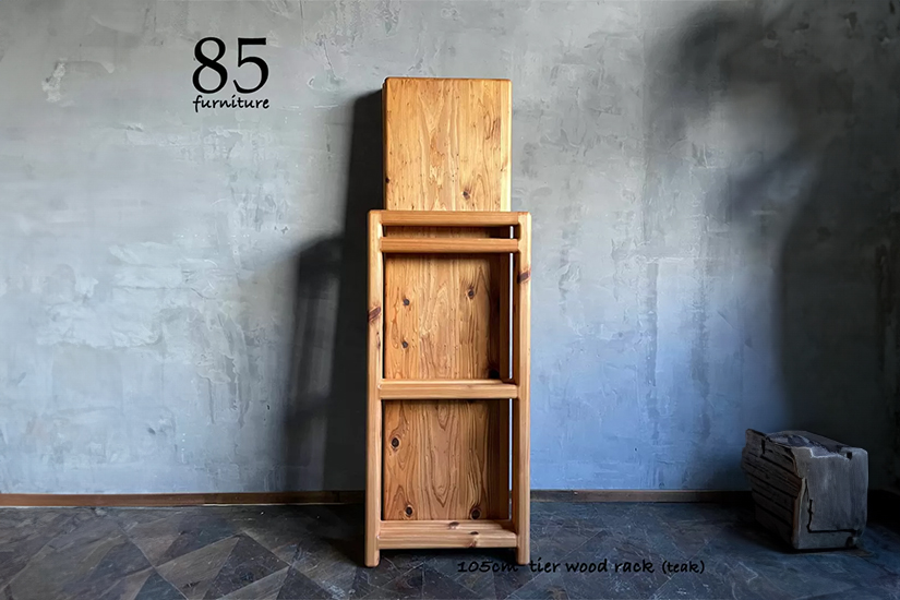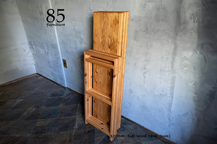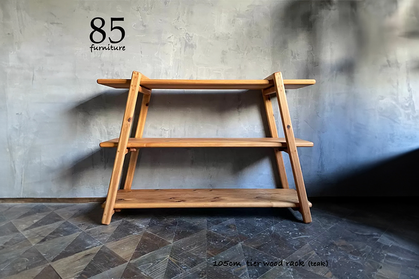 脚部も含め、すべてを無垢材で製作した組み立て式の3段棚です。