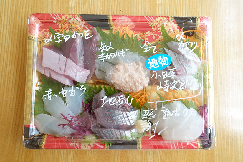 本日は自宅用に、全て“地物”の刺身盛り合わせを用意していただきました。帰宅後、家族で食べてみると、地アジをはじめ、熟成クエ、〆ソウダカツオなど、味はもちろん、それぞれの食感が良くて色味もキレイ。「小田原の地魚って、こんなに美味しいんだ!」と、大好評でした。