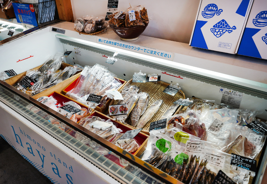 さらに、お持ち帰り用の干物も豊富に揃い、気に入った味を自宅で楽しめるのもうれしい。老舗の技と小田原の食文化を、今のスタイルで味わえる場所だ。