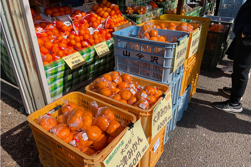 花より団子⁉ 地元産の柑橘類や漬物を目当てにするもよし