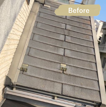 下屋根に、ヒビ割れやカケが多かったので、シーガードを施工しました。