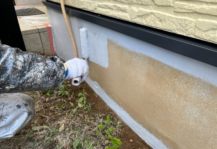 基礎巾木(コンクリート)塗装の様子