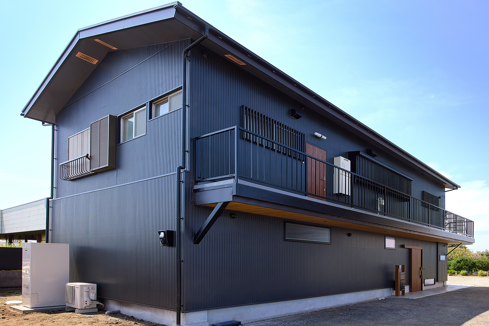 外観は黒を基調にした縦貼り材をカバー工法にて施工。スタイリッシュに仕上がりました。