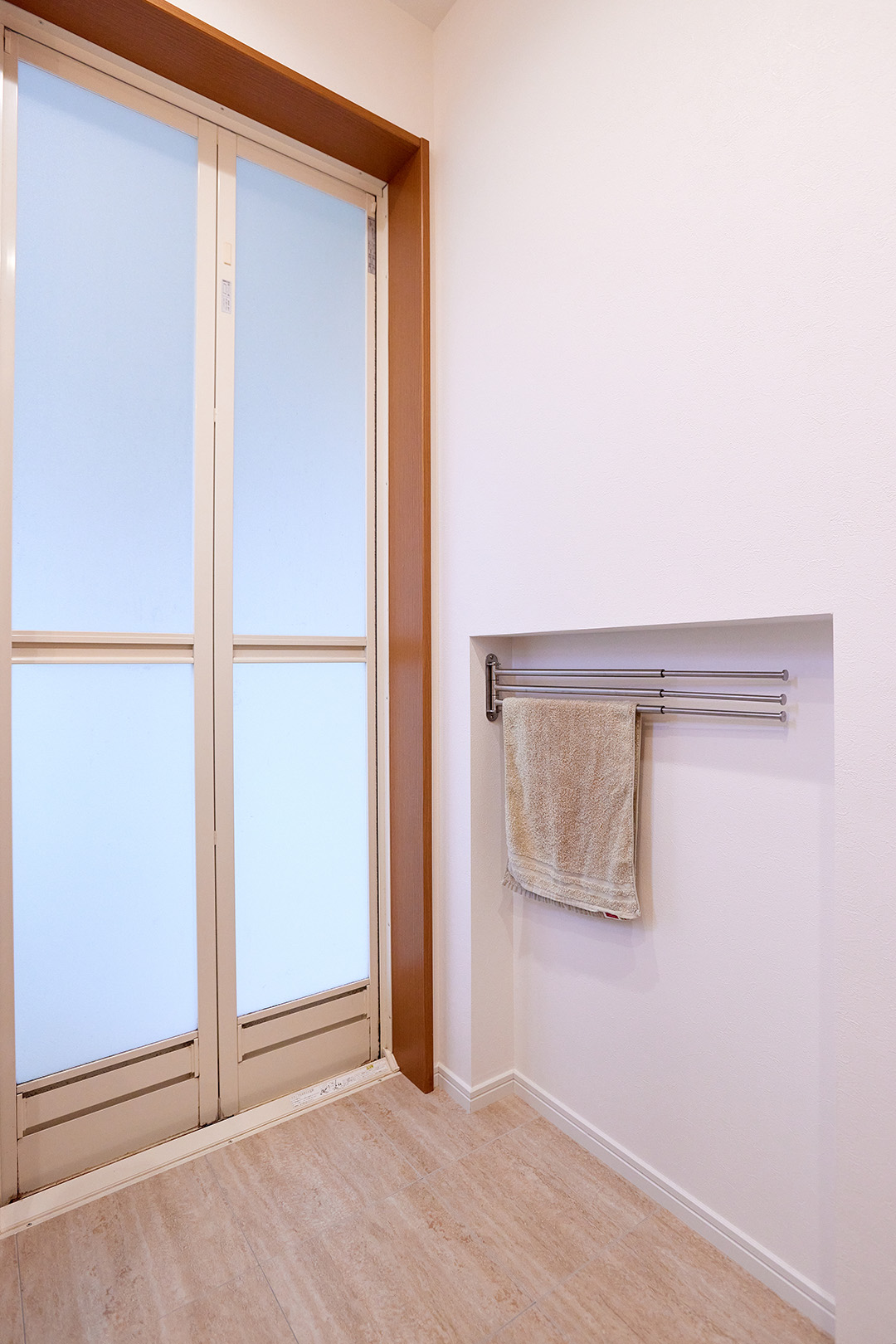 ニッチをつくりタオルバーを設置しました