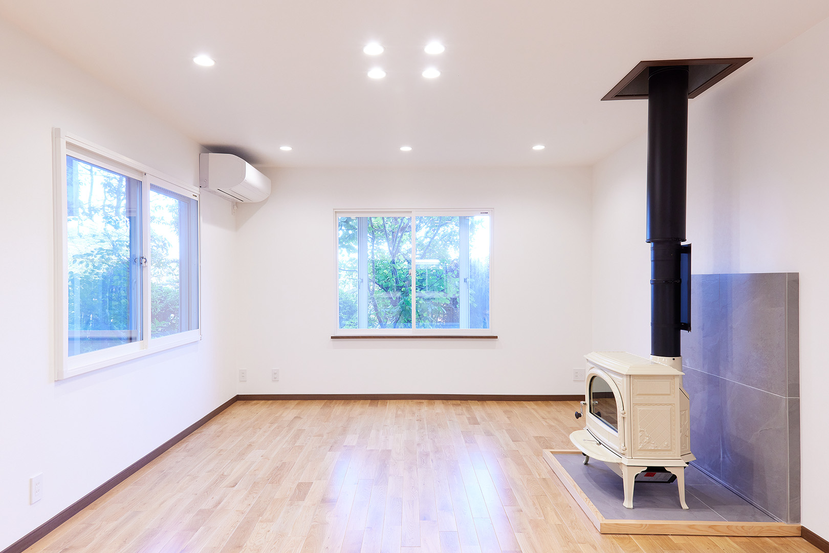 同じ薪ストーブをLDKの真ん中に設置。