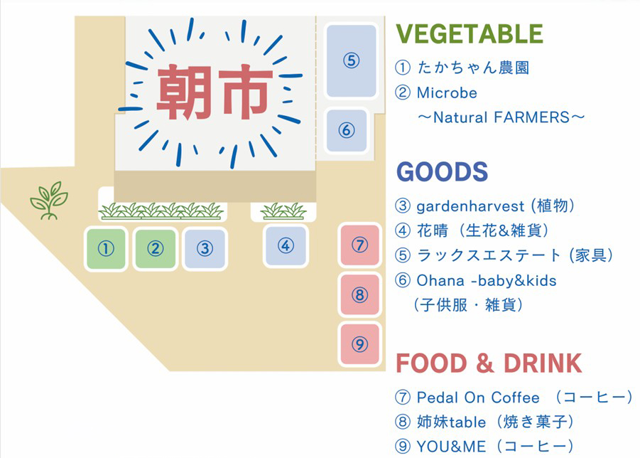 朝8時からスタートするこのイベントは、海辺の心地よい空気の中で、地元の新鮮な野菜やこだわりのアイテムに出会えるローカルマーケット。