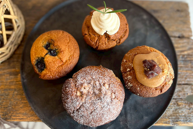 ドアを入ると、ガラスケースにはオーツクッキーやふっくらマフィンが並び、甘い香りに包まれます。
